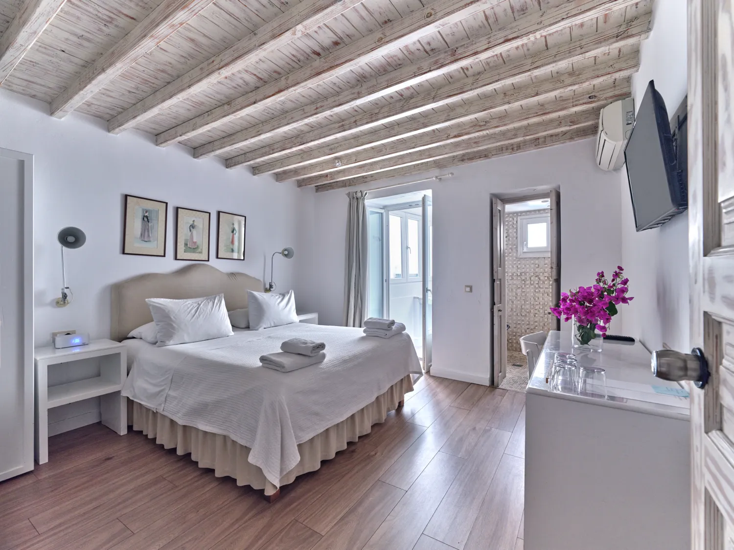 All rooms are either facing the alleys of Mykonos town or our terrace with views of the city.